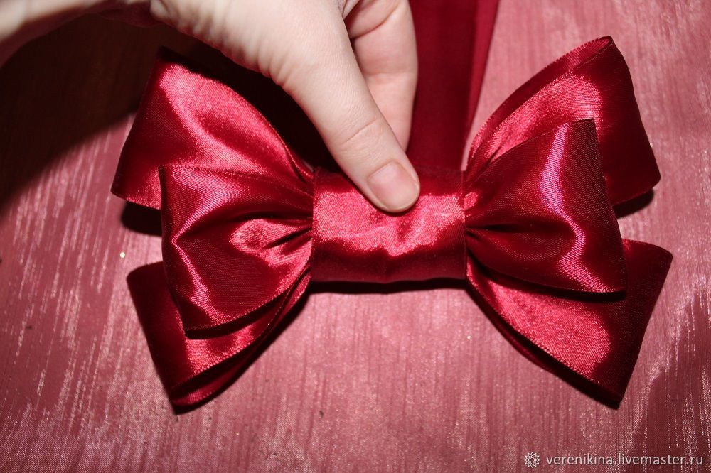 И с помощью горячего клея на месте шва приклеиваем наш бант.