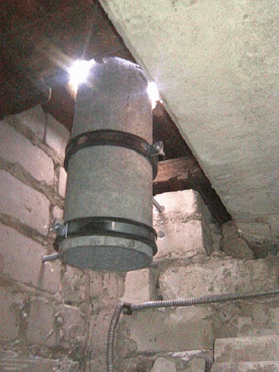 Этап 3. Когда приточные отверстия будут готовы, делаем вытяжку. Она будет находиться на противоположной стене под потолком. Инструменты используем те же. Труба, вставленная в это отверстие, будет выводиться над крышей. Чем большей будет ее длина, тем интенсивнее будет воздухообмен в помещении. В целом, труба должна выступать минимум на 50 см над крышей.