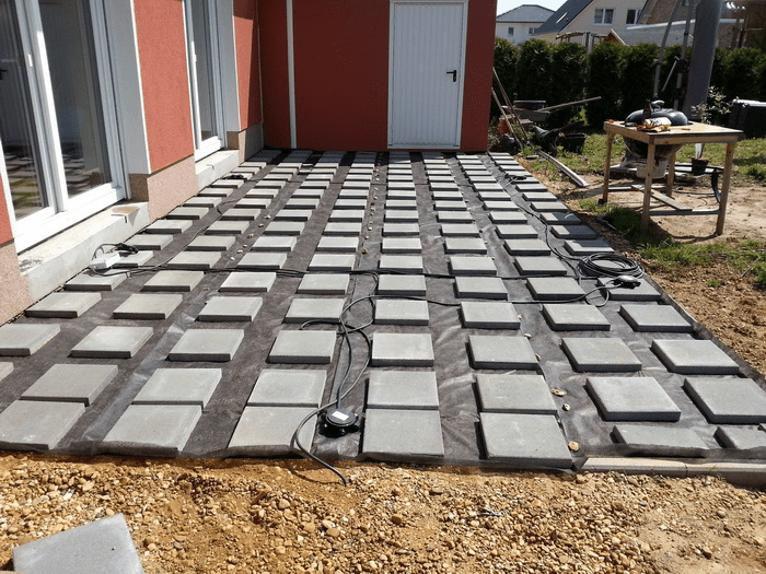- Внизу ям сделать подушку из щебня толщиной 10–15 см. Поверх него песок, предварительно смоченный.
