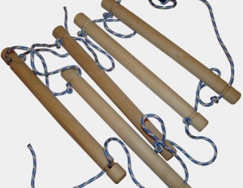 Конструкция представляет собой гибкую лестницу, изготовленную из веревки и древесных брусков в качестве ступеней.