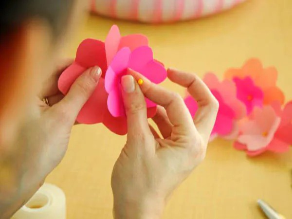 — научить учащихся изготовлению объемных цветов из цветной бумаги,