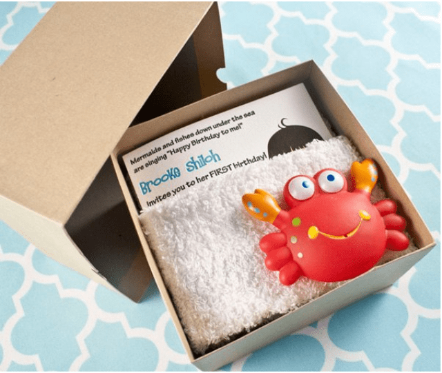 Сделайте тематические пригласительные, которые можно поместить в бутылки, распечатав шаблоны на принтере и заполнив пустые места. А еще такие пригласительные можно расположить в коробке с прикольной игрушкой типа крабика или рыбки.