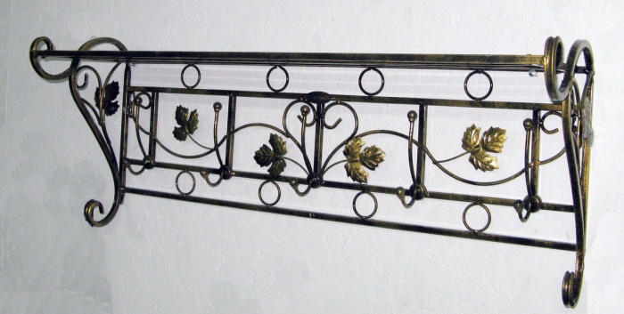 Интересный кованый легкий вариант, возможно, не совсем из подручных материалов, но имеет место быть. Очень функциональный и изящный вариант, содержит подставку для обуви и для головных уборов.