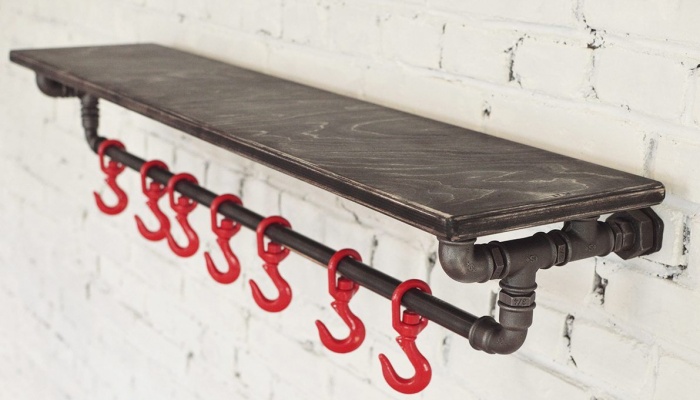 В интерьер индустриального стиля, растик или лофт отлично впишутся вешалки из водопроводных труб или крючки из гаечных ключей.
