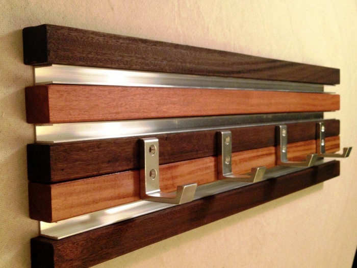 Относительно крючков можно сказать, что подойдет все, что есть под рукой. Например, оригинально будут смотреться ненужные гаечные ключи, которые вначале зачищаются и полируются. После этого их нужно согнуть и просверлить в детали несколько отверстий, в которые вставляются саморезы для прикручивания к планке. Интересно вместо ключей выглядят и обычные вилки, но они должны быть стальными, так как алюминиевые очень хрупкие.