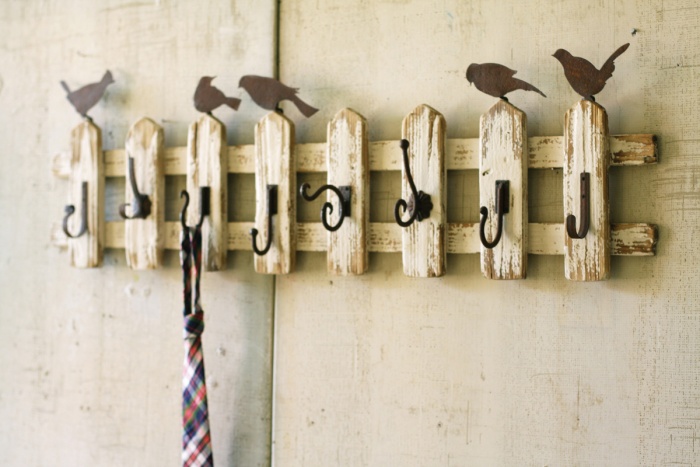 Обработав подобранную в лесу ветку, можно закрепить ее на стене, и снабдив полудюжиной крючков, использовать как вешалку. Набор поленцев с ветками, прикрепленный на полке, также может послужить вешалкой в прихожую, причем можно использовать плечики. Старые столовые приборы также можно превратить в стильные крючки. Стоит попробовать, нет ничего более увлекательного, чем без больших затрат создавать комфортное пространство вокруг себя своими руками.