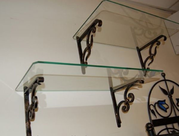 - Стекло – отлично смотрится в интерьере любой комнаты, делает полки визуально более легкими и воздушными, но в силу своей хрупкости требует специальных приспособлений и оборудования для вырезания сложных отверстий и шлифовки.