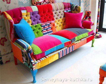 Необычности придаст техника мозаики с использованием лоскутков, вырезать составляющие можно в виде треугольников, квадратов, ромбов, всего, что только пожелает душа.