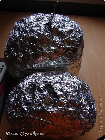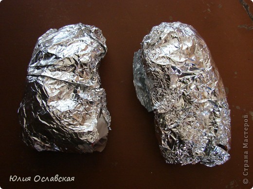 лапы делаем по тому же принципу, что и тело. Газету оборачиваем фольгой