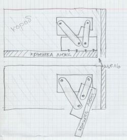 В принципе можно сделать его так, чтобы он складывался вдоль короба люка, а не на верх. Пока окончательно не решил.