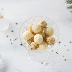 7. Шарики оставляем в морозилке на 10-15 минут, а затем обваливаем в кокосовой стружке. Еще раз отправляем конфеты в морозилку, но уже на час.