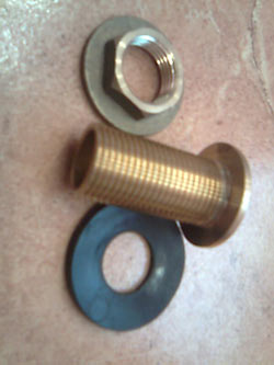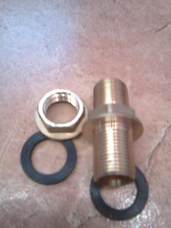 - Обмотайте резьбу штуцера ФУМ лентой, вставьте в отверстие и закрепите с внутренней стороны гайкой.