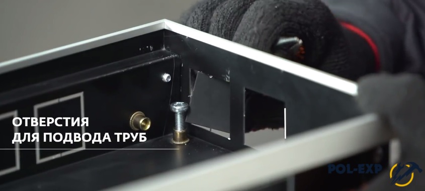 Для водяного устройства важно выполнить соединения в лотке, поскольку устранение любых неполадок в стяжке будет крайне затруднительно. Для подключения используют две трубы: подающую, на которую устанавливают термостатический клапан, и обратную с запорным вентилем. Для стравливания воздуха пользуются краном Маевского.