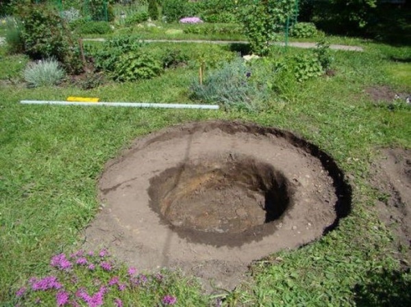 Выбранный резервуар можно или закопать вровень с уровнем грунта, или оставить бортик. Чаще всего борта декорируют камнем или галькой. В зависимости от этого выбирают глубину котлована. Его выкапывают по размерам чуть больше, чем чаша.