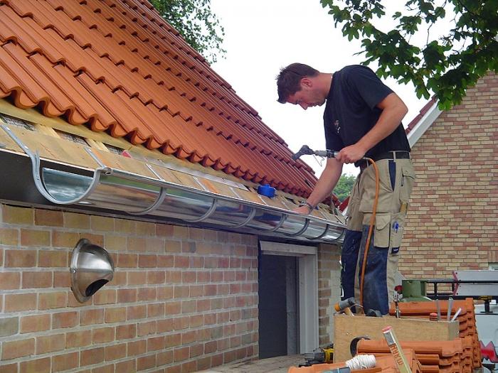 Завершающим штрихом в обустройстве кровли является монтаж водостока, и желательно, чтобы он хорошо справлялся с поставленной задачей, избавляя от чрезмерного увлажнения стен и придомовой территории. В данном материале подробно изложен порядок действий от выбора подходящего водостока и до удобного плана, как крепить желоб и трубу, лишний раз не переставляя лестницу.