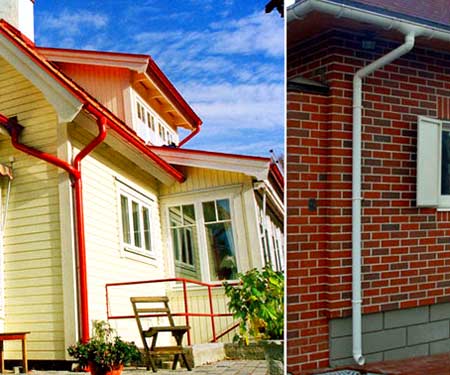 Водоотводные системы крыши дома являются обязательной составляющей «обвязки» кровли, и их монтаж никогда не стоит откладывать «на потом». Стены дома, крыша которого не оснащена грамотно установленным , потеряют свой респектабельный внешний вид в течение первого же года эксплуатации. Атмосферные осадки, попадающие на отделочные материалы стен, способны свести на нет все затраченные усилия по оформлению фасада. Причем на поверхности будет попадать не только вода с крыши, но и вся пыль и грязь, скопившаяся на кровле за время отсутствия дождей и смываемая водными потоками.