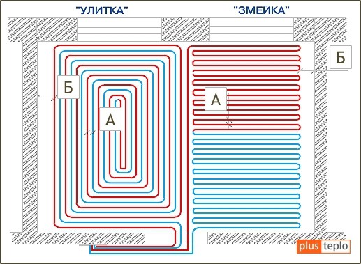 . Схемы монтажа теплого водяного пола своими руками выглядят так: