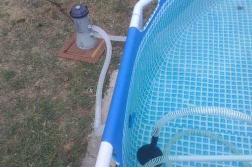 Этот способ можно немного доработать и сделать вывод очищенной воды обратно в бассейн.