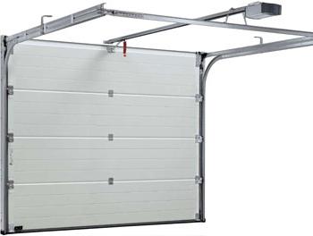 Представляют собой набор панелей (сдвижных секций), соединенных между собой петлями. Крепятся и передвигаются по специальным направляющим вверх. При открывании поднимаются одна за другой и заходят в нишу под потолком. Секционные ворота для гаража очень удобны.