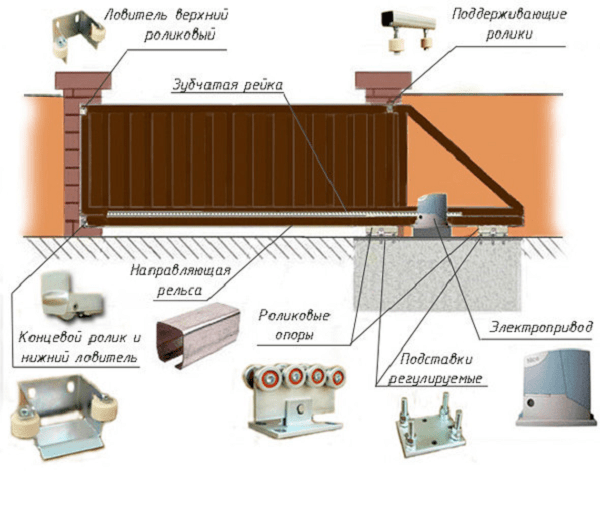 - для откатных — отсутствует достаточный по длине прямолинейный участок ограды рядом с проёмом.