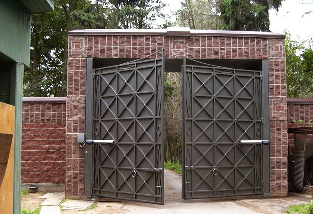 Наиболее оптимальным вариантом считаются конструкции, в которых полотна открываются внутрь. Такой способ открывания не загораживает водителю вид на проезжую часть, что очень удобно в случаях, когда выезд с территории выходит прямо на дорогу.