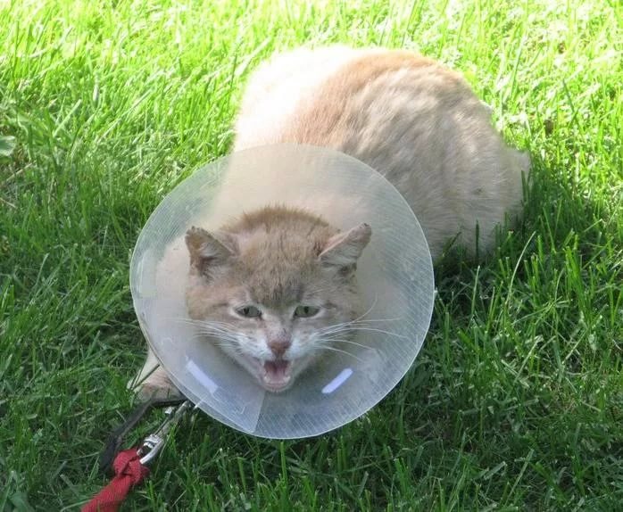 После того, как нашей кошке Мурке прооперировали глаз, надо было надеть ей защитный воротник, чтобы она не разодрала швы и не внесла инфекцию. Раньше мы надевали нашим кошкам такой воротник, и никаких особых проблем не было. Но в этот раз всё оказалось сплошным кошмаром. Пять часов мы не могли закрепить защитный воротник на кошке.