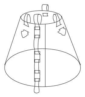 Вырезается усеченный конус нужной ширины и диаметра с 4-5 радиальными прорезями для крепления. Срезы должны быть гладкими. Там, где шея, крепится марля или другой материал, шнуровка. При желании сделать конус более красивым, его обшивают тканью. Своему коту после кастрации можно сделать картонный вариант воротника. Он прост, прослужит недолго, зато дешев, не шокирует животное.