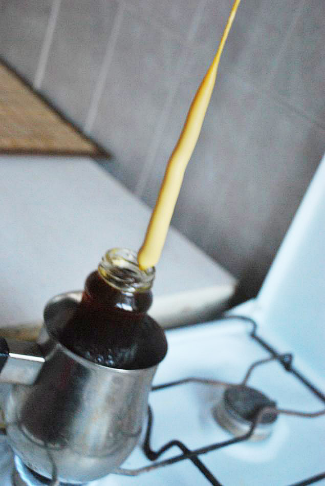 - подготовленный фитиль обмочить в расплавленной жидкости;