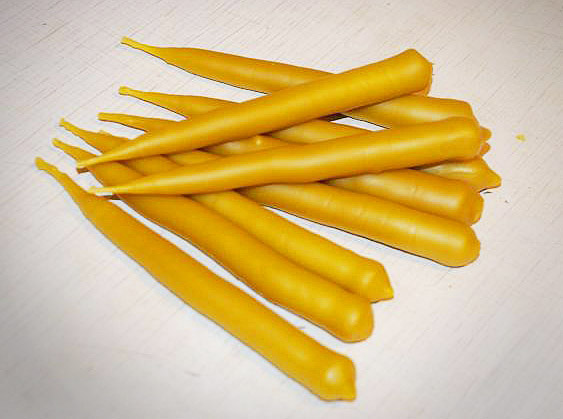Многообразия форм нет. Они изготовлены из листа вощины, которой при катании придается форма валика или конуса. Позже такие свечи разрезают на меньшие фрагменты. Но делать это не обязательно. Если нет вощины, изготовить свечу из натурального воска. Вид будет такой, какой пожелает мастер. Ведь расплавленный воск выливается в подготовленные формы и после остывания принимает их вид.