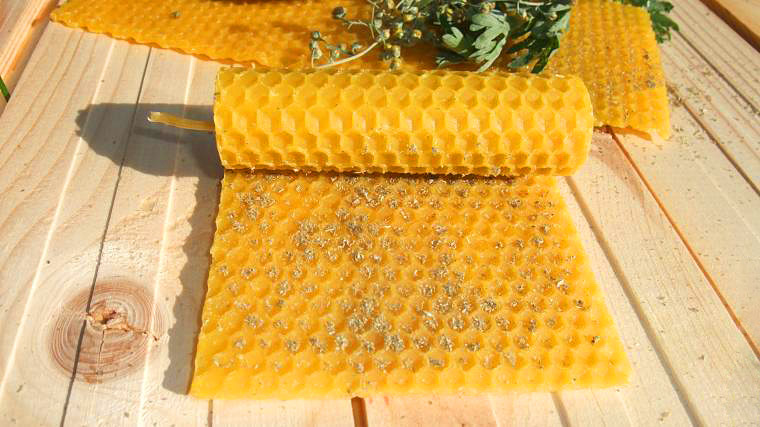 Магазины, реализующие продукты пчеловодства, предлагают готовые листы вощины. Но пасечники с опытом, имея нехитрое оборудование, освоили технику изготовления и справляются с этим самостоятельно. Запасы обычно большие, поэтому изготовить свечу, используя всего 5-6 листов, достаточно выгодно. Ее размещают в собственном доме или используют в помещениях, где зимую пчелы. Такая профилактика станет полезной для насекомых, немного ослабевших за зимний период.