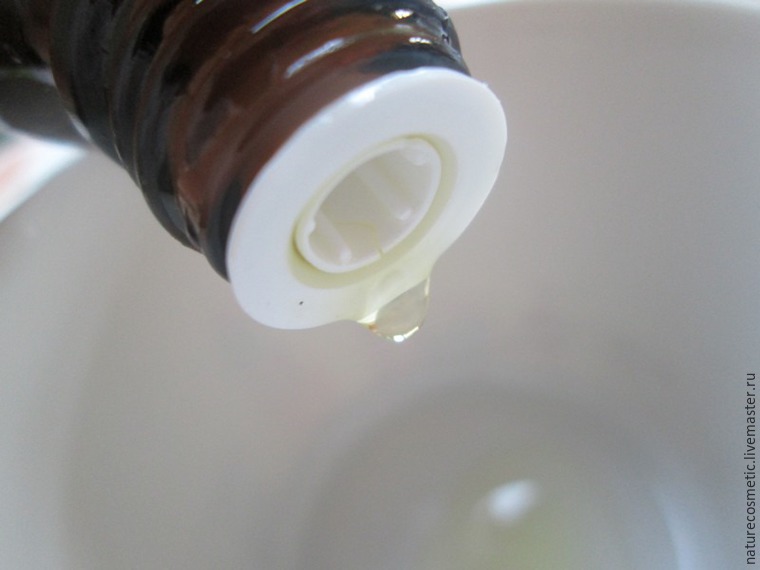 Добавляем эфирные масла. Эфирное масло сандала имеет более вязкую консистенцию, чем остальные, поэтому добавить его будет сложнее.