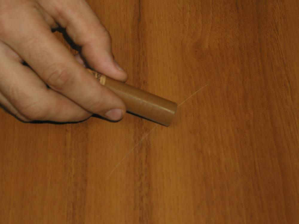 Существует еще один вариант – восковой карандаш для дерева. Он используется для маскировки царапин на различных поверхностях и позволяет устранить мелкие повреждения с минимальными затратами времени и средств.