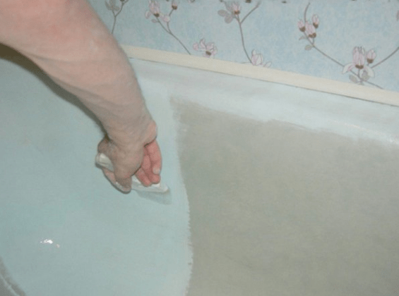 После очистки ванны и подготовки стакрила выполняется реставрация сантехники: