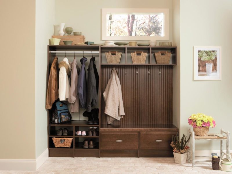Не забудьте вскрыть прихожую лаком, прикрепить ручки и крючки.