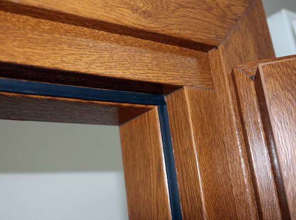 - Если на вашей двери, установленной в частном доме, или в квартире (на наружной её стороне) есть деревянная накладка, можно снять таковую и проложить прокладку со вспененного полиэтилена. После чего, деревянная накладка устанавливается обратно.