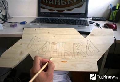- Если надпись будет сделана методом резьбы,то лучше всего найти доску из липы.Это мягкая древесина,на которой легко получаются не только надписи,но и целые сюжеты на банную тему