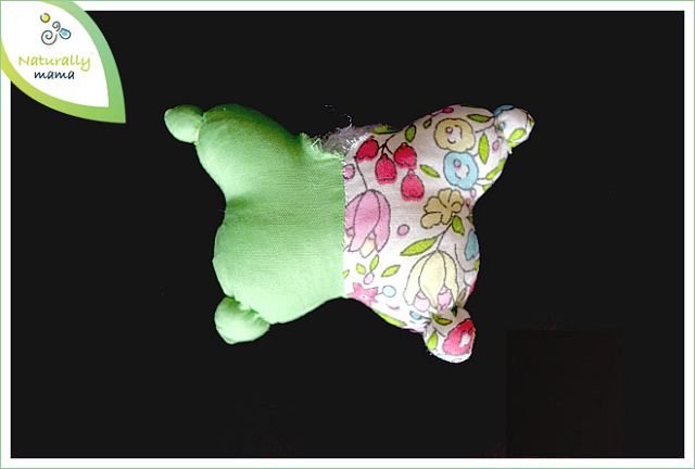 Прошила на руках белой ниткой, вывернула и плотненько набила синтепоном, зашила отверстие, оно было под хоботом, потайным швом.Сложила ткань пополам лицом внутрь, раскроила два слоновьих ушка и прошила на руках.