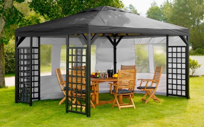 Это одна из разновидностей тентовых навесов. Это готовая конструкция, в комплект которой входят все необходимые элементы для монтажа. Части складываются подобно конструктору по схеме, предусмотренной производителем в инструкции. Монтируется такой навес за пару часов силами одного или двух человек.