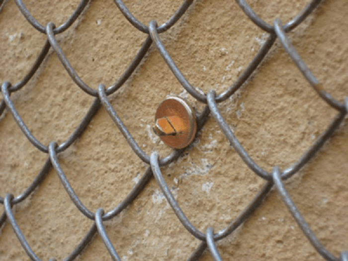 Теперь можно сделать выводы про все неровности стены. Шляпки саморезов должны остаться на расстоянии от стены равному «завалу» стены + толщине маяка (6 мм) + небольшому запасу (3 мм). Используя уровень, регулируем верхний и нижний саморезы и получаем четкую вертикаль. Аналогичную процедуру проводим с каждой вертикальной разметкой. С помощью нити определяем, насколько точно выставлены саморезы.