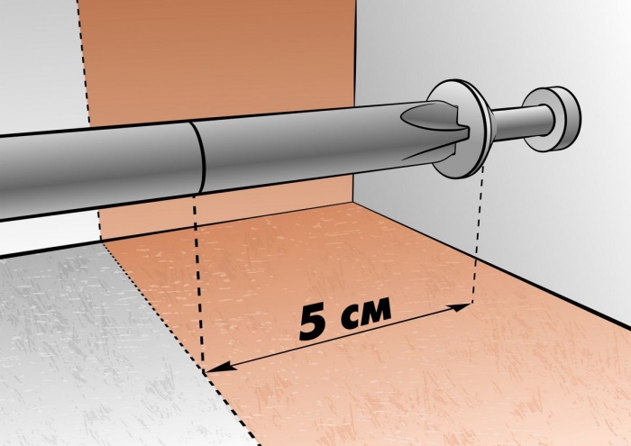 На крайних линиях от пола и потолка отступаем по 15 см и просверливаем отверстия, в которые забиваем дюбеля, а затем вкручиваем саморезы. Между верхними и нижними саморезами крайних вертикальных линий натягиваем по нити и в местах пересечения со всеми остальными линиями ставим метки. Просверливаем в этих точках отверстия, вставляем дюбеля и саморезы.