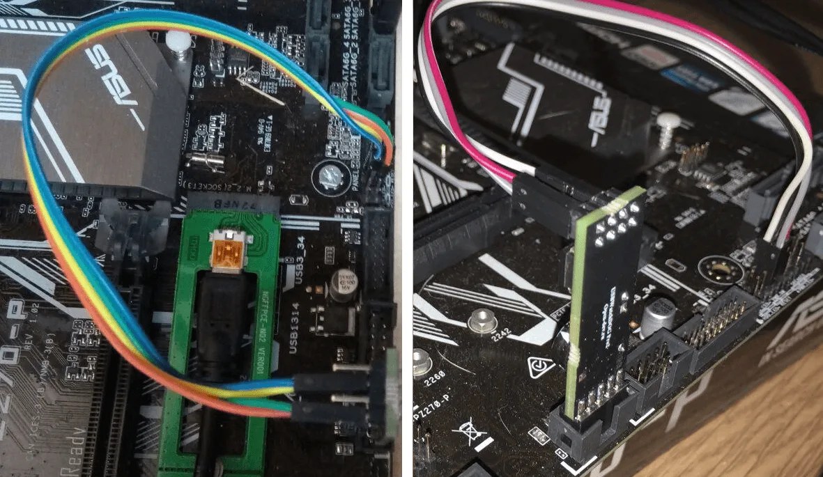 Берем USB удлинитель и соединяем райзер с материнской платой, проделываем это со всеми 6 райзерами.