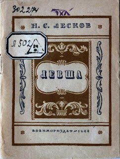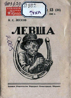 Весёлый и одновременно грустный, озорной и печальный сказ «Левша» издавался и в годы Великой Отечественной войны. Два издания, имеющиеся в фондах нашей библиотеки, я хочу вам представить. Обе эти книги — карманного формата, на тонкой бумаге, теперь уже пожелтевшей от времени, но с прекрасными чёрно-белыми иллюстрациями художников-графиков С. М. Пожарского, Ю. Ф. Кискачи и Г. К. Савицкого. Увидеть эти книги, изданные в годы войны, подержать в руках — прекрасная возможность вспомнить, перечитать сказ Лескова, и представить, что он значил для солдата на фронте…