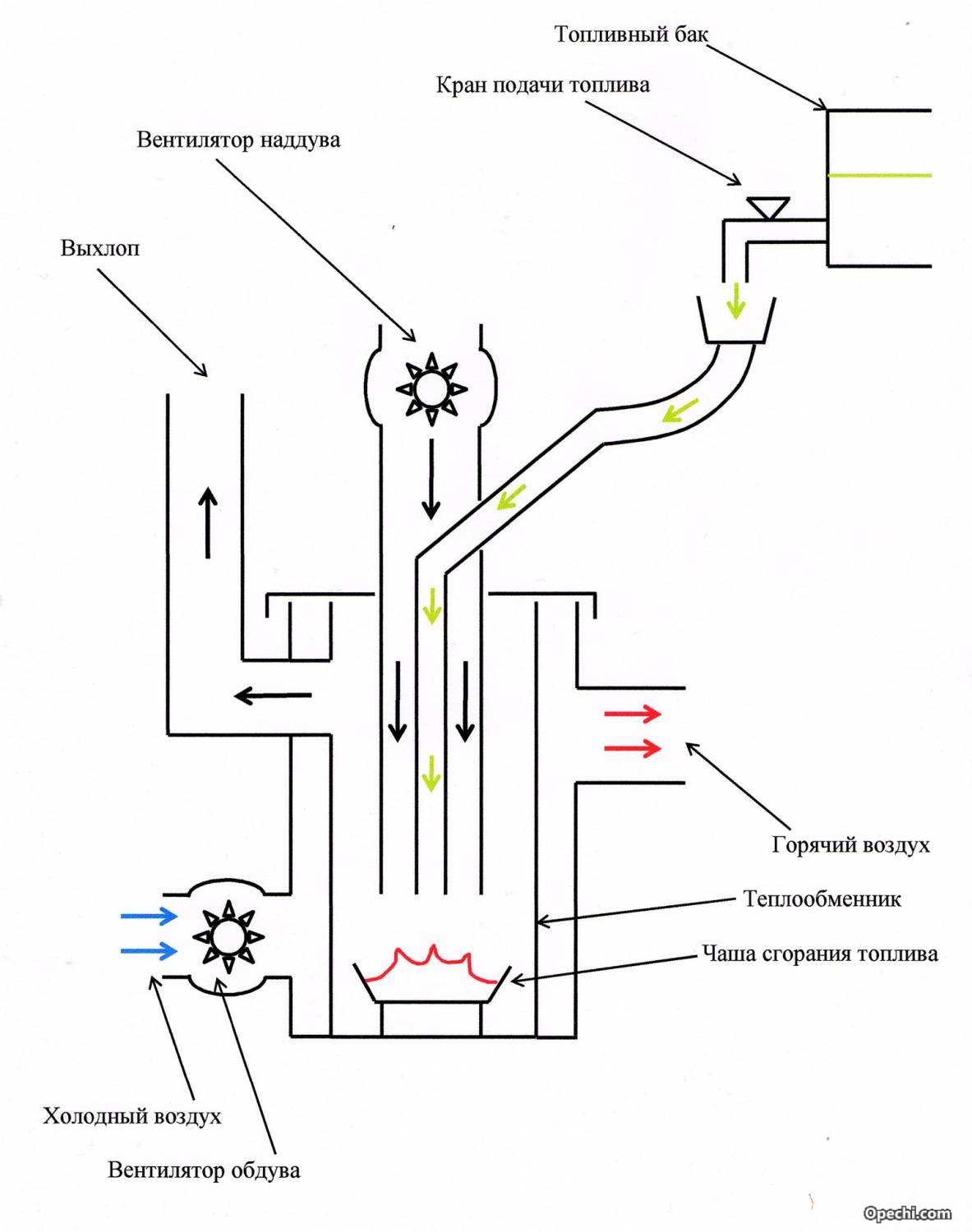 - пламя разогревает все плоскости печи. Металл, отдавая тепло, постепенно обогревает помещение;