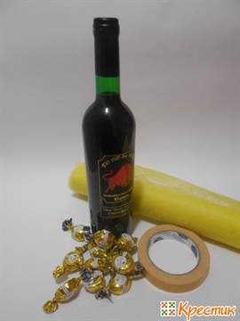 Теперь очень важный момент – способ крепления сладостей к бутылке. Существует 3 варианта:
