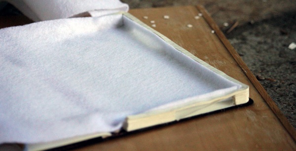 Шаг 13. Отправьте заготовленный чехол вновь под пресс, до полного высыхания клея. Не забудьте вовнутрь вложить деревянный брусок.