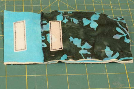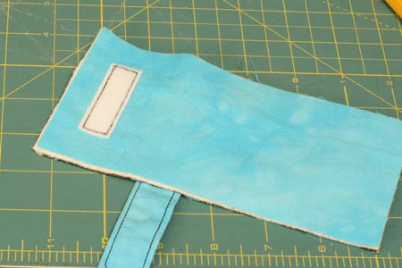 5. Переверните данную часть чехла и сверху накройте кусочком ткани голубого цвета.