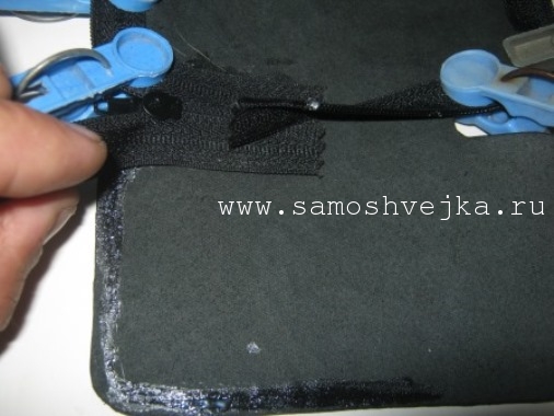 6. Приготовьте липучку, которая состоит из 2 частей. Пришейте одну часть к одной половинки чехла.