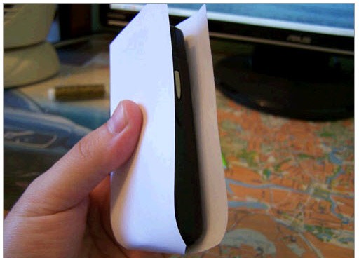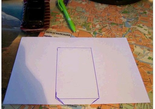 2. Отметьте на одной половинке бумаги контуры вашего мобильного телефона.