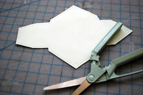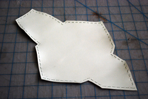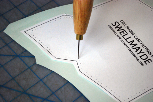 - Шилом проделать дырочки для нити по периметру, с закругленными углами.