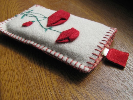 3. Двойным внешним швом прошейте чехол по периметру и далее можете, как угодно украсить, например, прикрепить брелок.